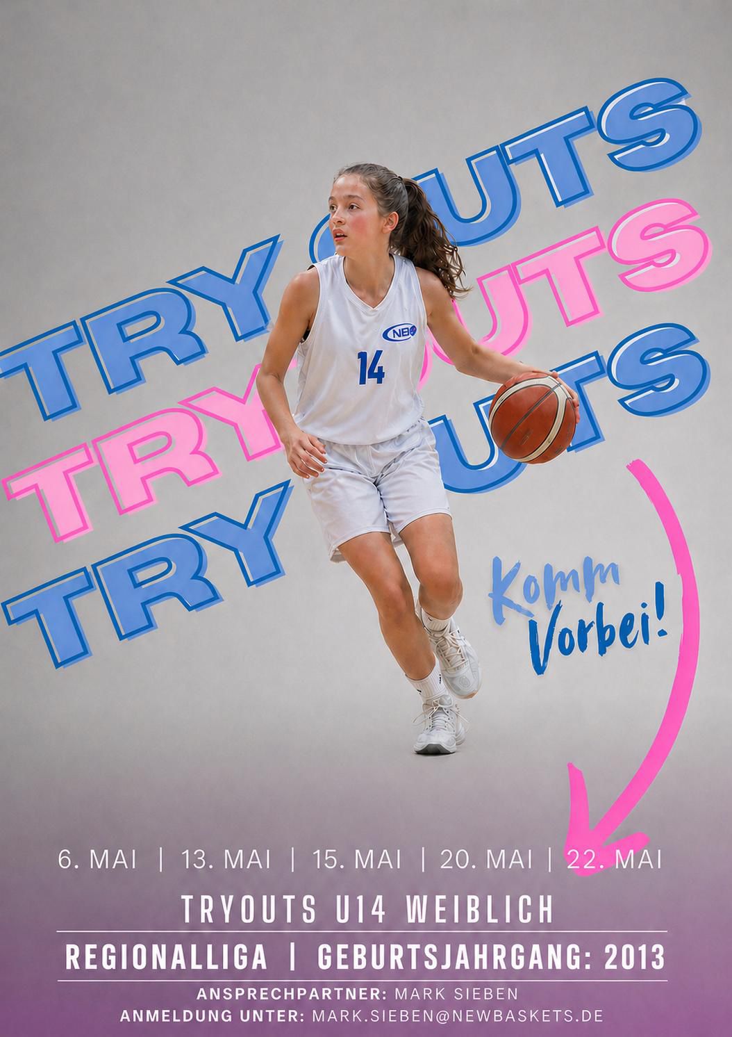 Dann zeig uns, was du drauf hast. Bei unseren U14 Tryouts für die Regionalliga suchen wir Spielerinnen mit Einsatz, Teamgeist und dem Willen, besser zu werden.