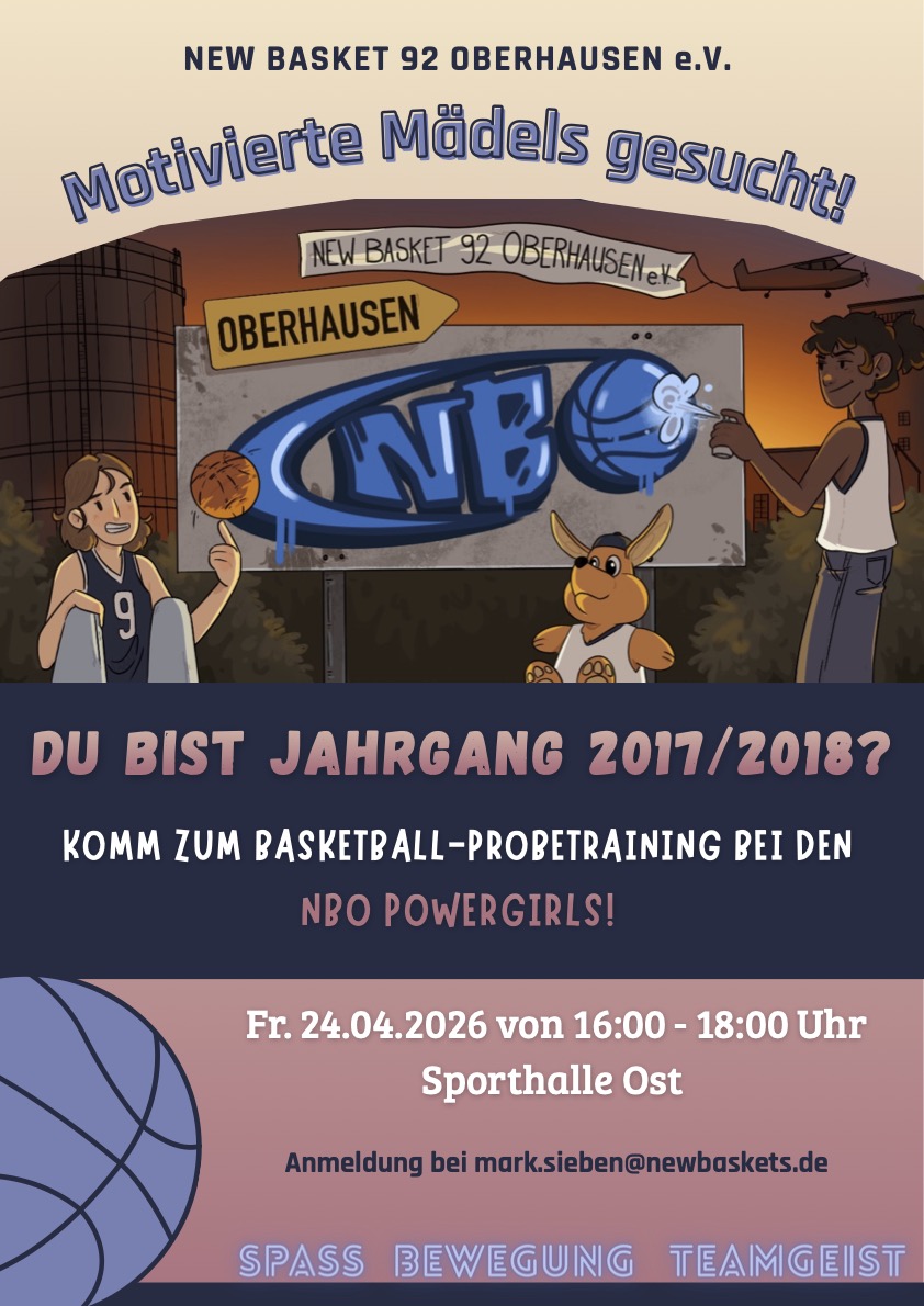 New Basket Oberhausen (NBO) bietet ab sofort die Möglichkeit, ein Probetraining in den Altersklassen U12 bis U18 zu vereinbaren. Bevorzugt suchen wir Spielerinnen mit Basketball-Vorerfahrung, die ihre Fähigkeiten auf das nächste Level bringen möchten.